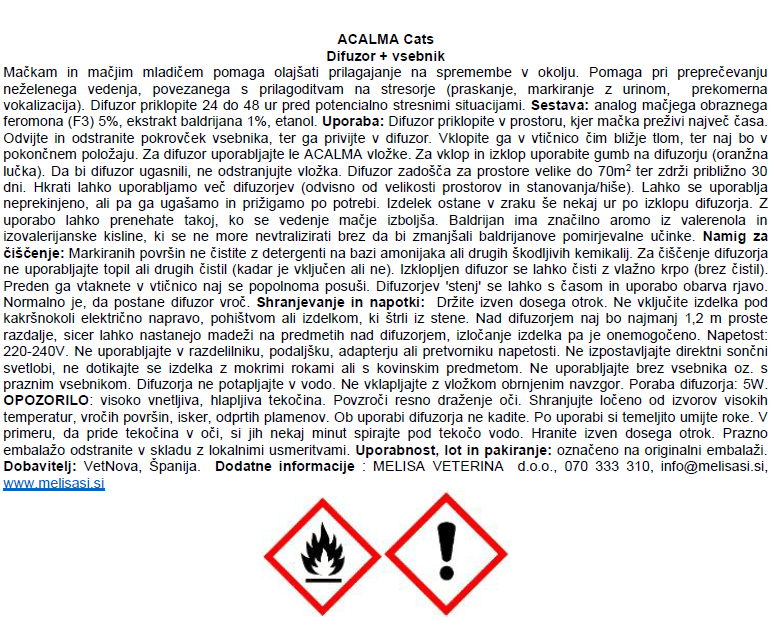 Varnostni list: VL-ACALMA-CATS-Diffuser-refill-ACALMA-CATS-Refill-ACALMA-CATS-Spray