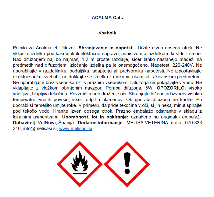 Varnostni list: VL-ACALMA-CATS-Diffuser-refill-ACALMA-CATS-Refill-ACALMA-CATS-Spray