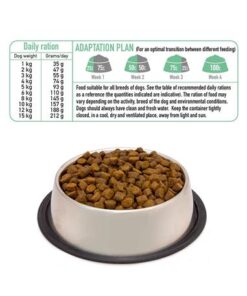 Hrana je primerna za vse male in mini pasme psov. Upoštevajte tabelo priporočenih dnevnih količin (navedene količine so okvirne). Količina hrane se lahko razlikuje glede na aktivnost, pasmo psa in okoljske pogoje. Psi morajo imeti vedno na voljo čisto, svežo vodo. Hranite posodo tesno zaprto, na hladnem, suhem in zračnem mestu, stran od svetlobe in sonca.