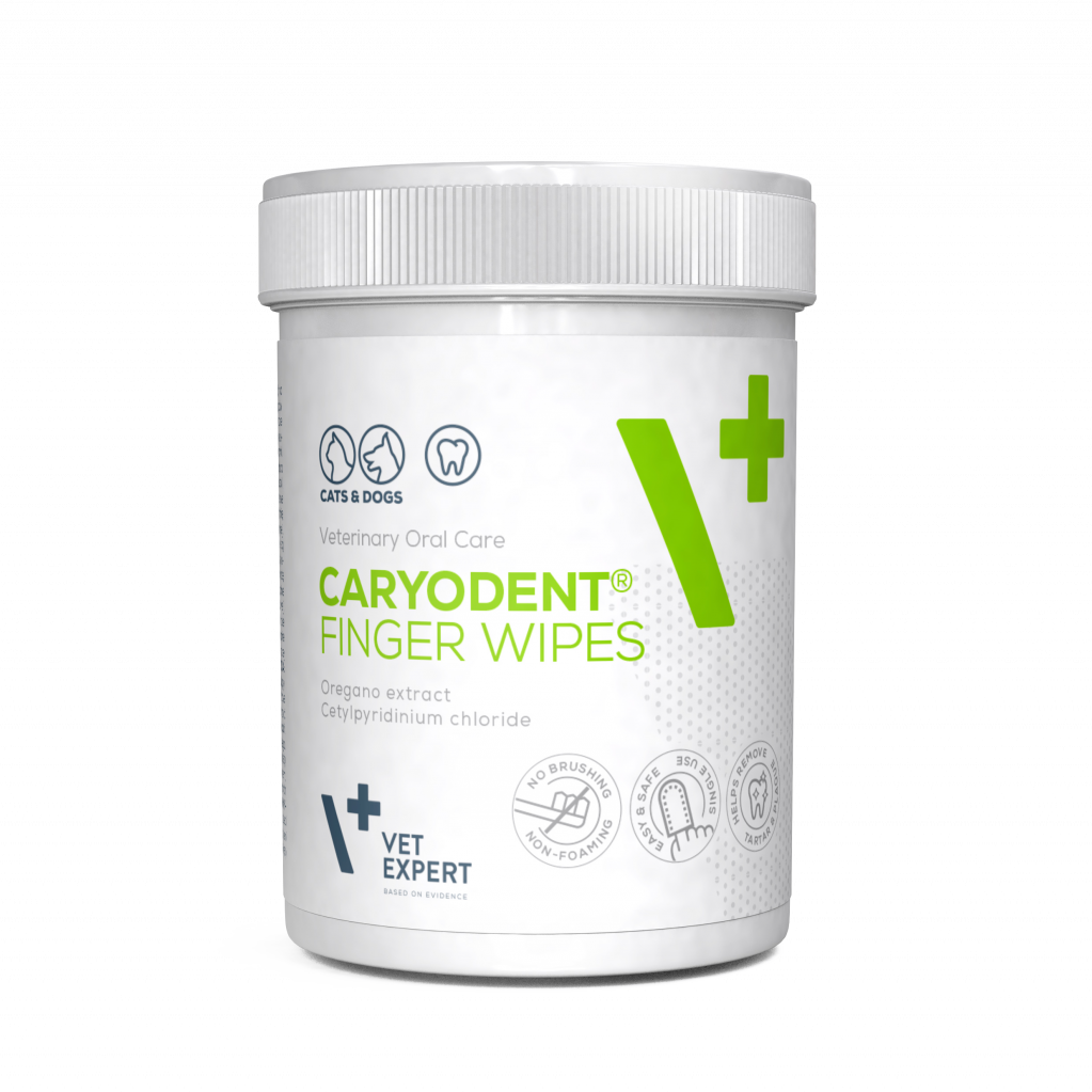 • CARYODENT FINGER WIPES so nasičeni z raztopino na osnovi cetilpiridinijevega klorida, ki optimizira ustni mikrobiom.