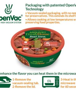 Sestava: 97 % sveže govedine v omaki, sladki krompir, grah, korenje, začimbe. Prehranski dodatki: Vitamini (IU/kg): Vitamin A (3a672a) 8011, Vitamin D3 (3a671) 513, Vitamin E (3a700) 160. Minerali: 3b503 (Mn: 3,2), 3b103 (Fe: 32), 3b405 (Cu: 4,3), 3b603 (Zn: 35), 3b201 (I: 0,5). Analitske sestavine: Surove beljakovine 12,5 %, surova maščoba 8,3 %, surove vlaknine 0,74 %, surovi pepel 0,8 %, vlaga 77,7 %. Presnovna energija / kg: 1245 kcal.