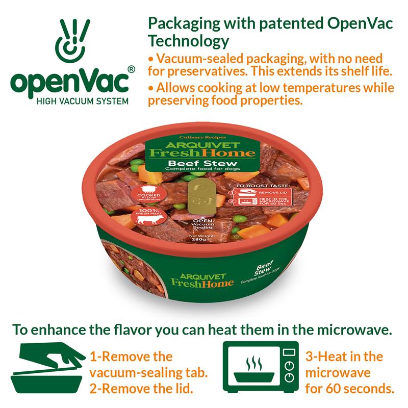 - Embalaža s patentirano tehnologijo OpenVac. Vakuumsko zaprto brez konzervansov, kar podaljša rok uporabnosti.