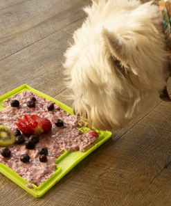 LickiMat pladenj iz TPR gume, ki je oblikovan tako, da zaposli in na zanimiv (in okusen) način prežene dolgčas vašega psa.
