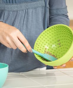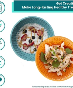 Priporočen način uporabe: najbolje se obnese z mokro hrano, surovo hrano ali priboljški v obliki paste. S hrbtno stranjo žlice ali lopatice enakomerno porazdelite hrano po površini podloge tako, da se porazdeli v »vdolbinice«. Eksperimentirate lahko z različnimi vrstami hrane in priboljški.