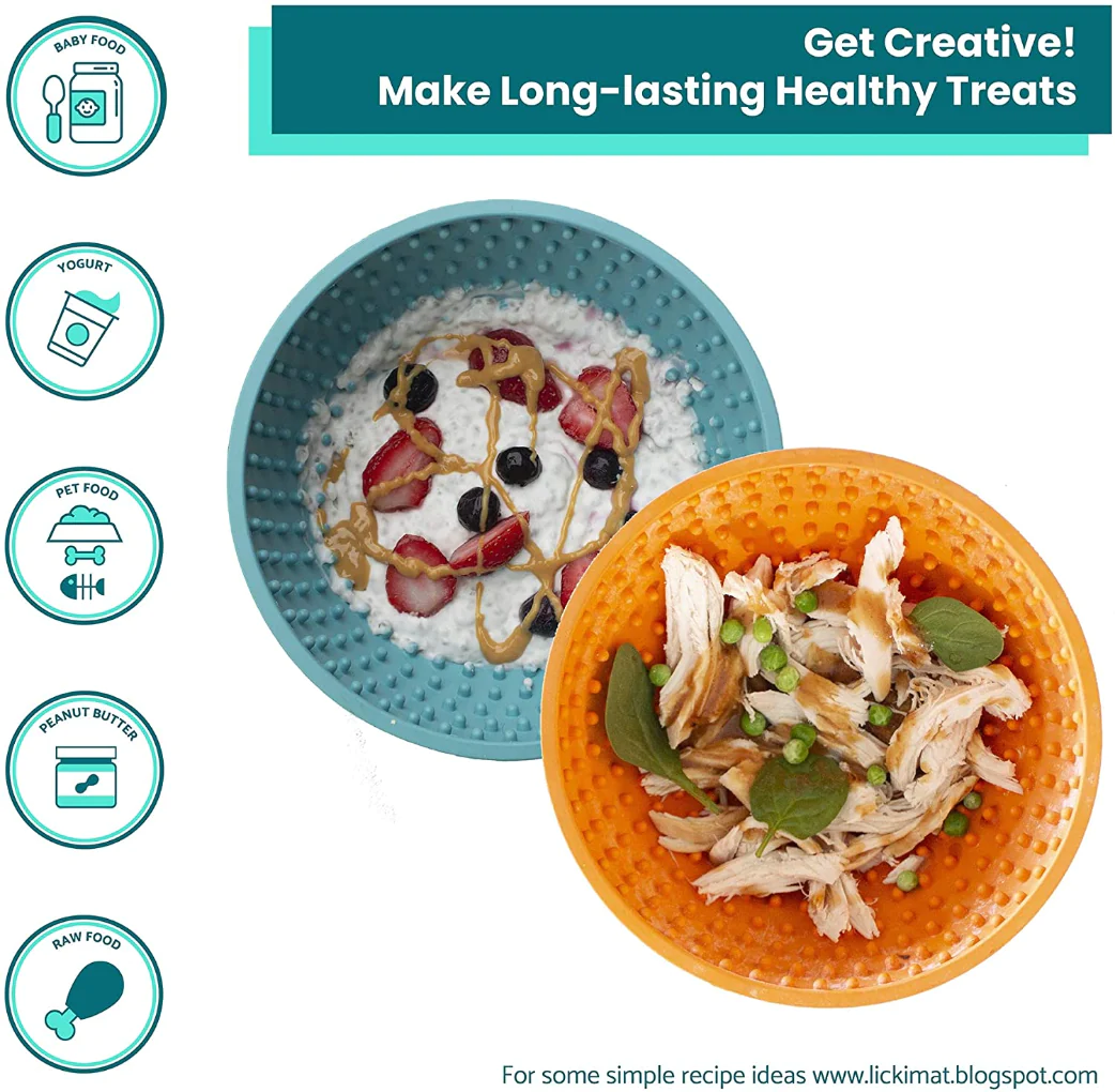 Priporočen način uporabe: najbolje se obnese z mokro hrano, surovo hrano ali priboljški v obliki paste. S hrbtno stranjo žlice ali lopatice enakomerno porazdelite hrano po površini podloge tako, da se porazdeli v »vdolbinice«. Eksperimentirate lahko z različnimi vrstami hrane in priboljški.