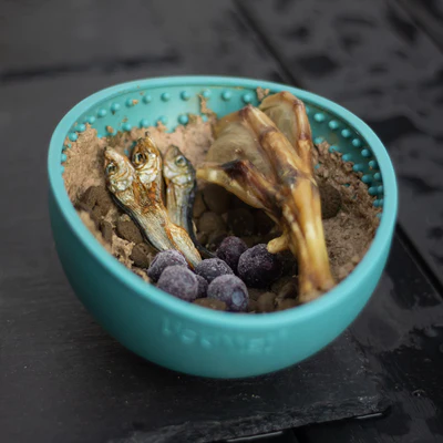 Predlogi za serviranje: surovo meso, jajce, ribe, najljubša mokra hrana vašega psa. Sami lahko pripravite priboljške iz zmiksanih konzerviranih rib, mesa, jogurta, skute, zmletih pasjih piškotkov zmehčanih z vodo, …