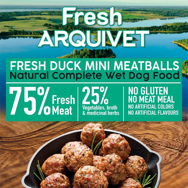 Mini mesne kroglice iz račjega mesa, popolna hrana za vse vrste odraslih pasem psov, z visokim deležem svežega mesa, zaradi česar so okusne in lahko prebavljive.