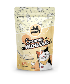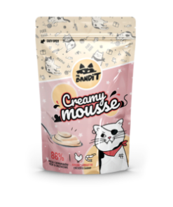 Sestava: piščančja prsa 84%, hidrolizat piščanca 4,6%, škrob 1%, rožičeva moka 1%, minerali 0,5%, repično olje 0,4%. Analitska sestava: Surovi pepel 2,00 %, surova vlakna 1,00 %, surove maščobe 1,5 %, surove beljakovine 10,20 %, vlaga 82 %.