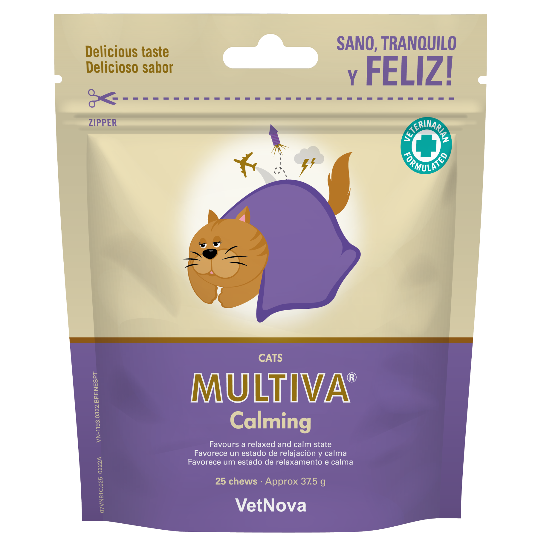 Multiva Calming za mačke za podporo pri stresu z unikatno kombinacijo učinkovin.