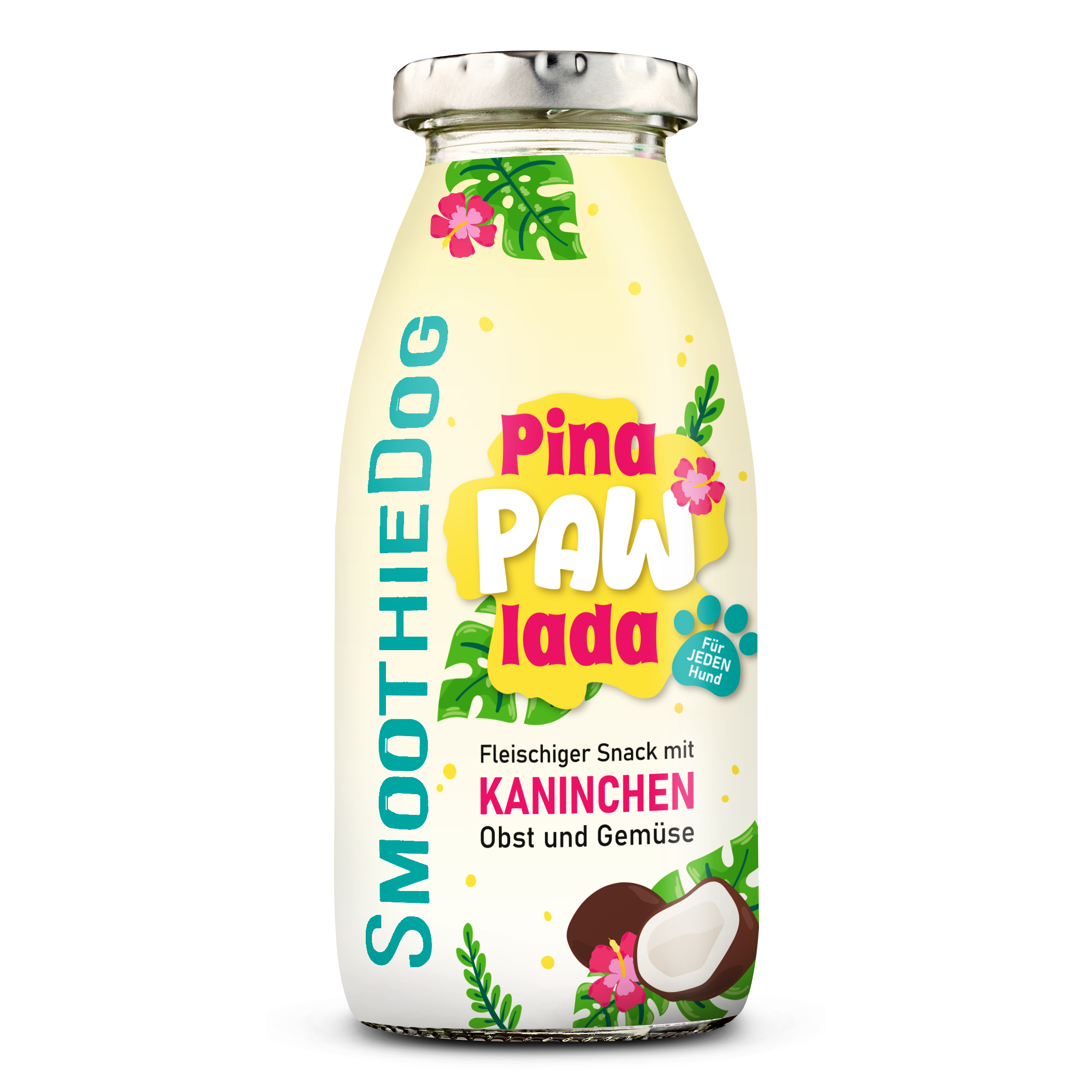 Osvežujoča poletna poslastica za vašega psa. Pina Pawlada je posebna poletna izdaja pasjega smoothieja, ki združuje tropski okus ananasa in kokosa s kunčjim mesom.