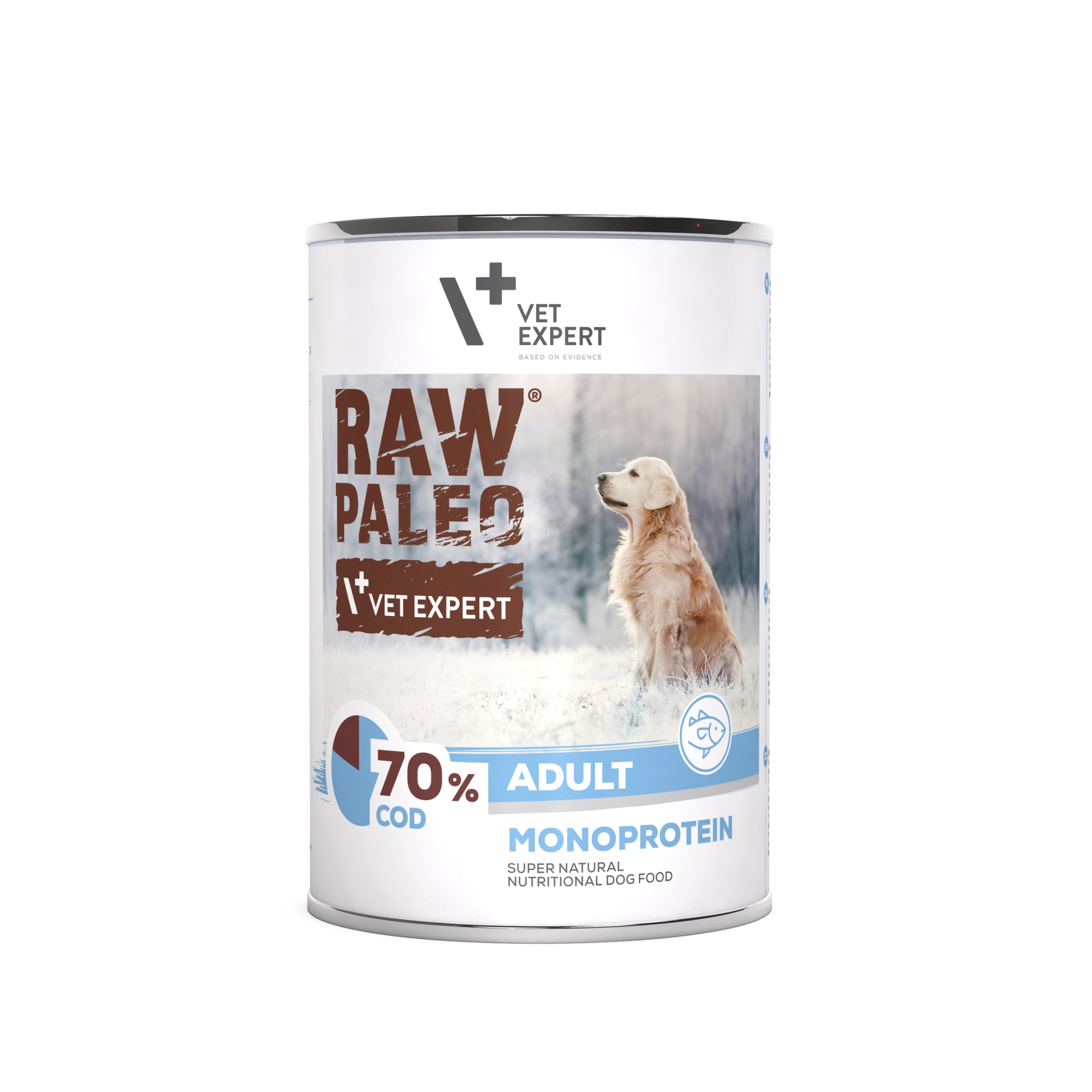 Raw Paleo Adult Dog Riba je popolna uravnotežena monoproteinska hrana za odrasle pse, starejše od 1. leta z okusom ribe.