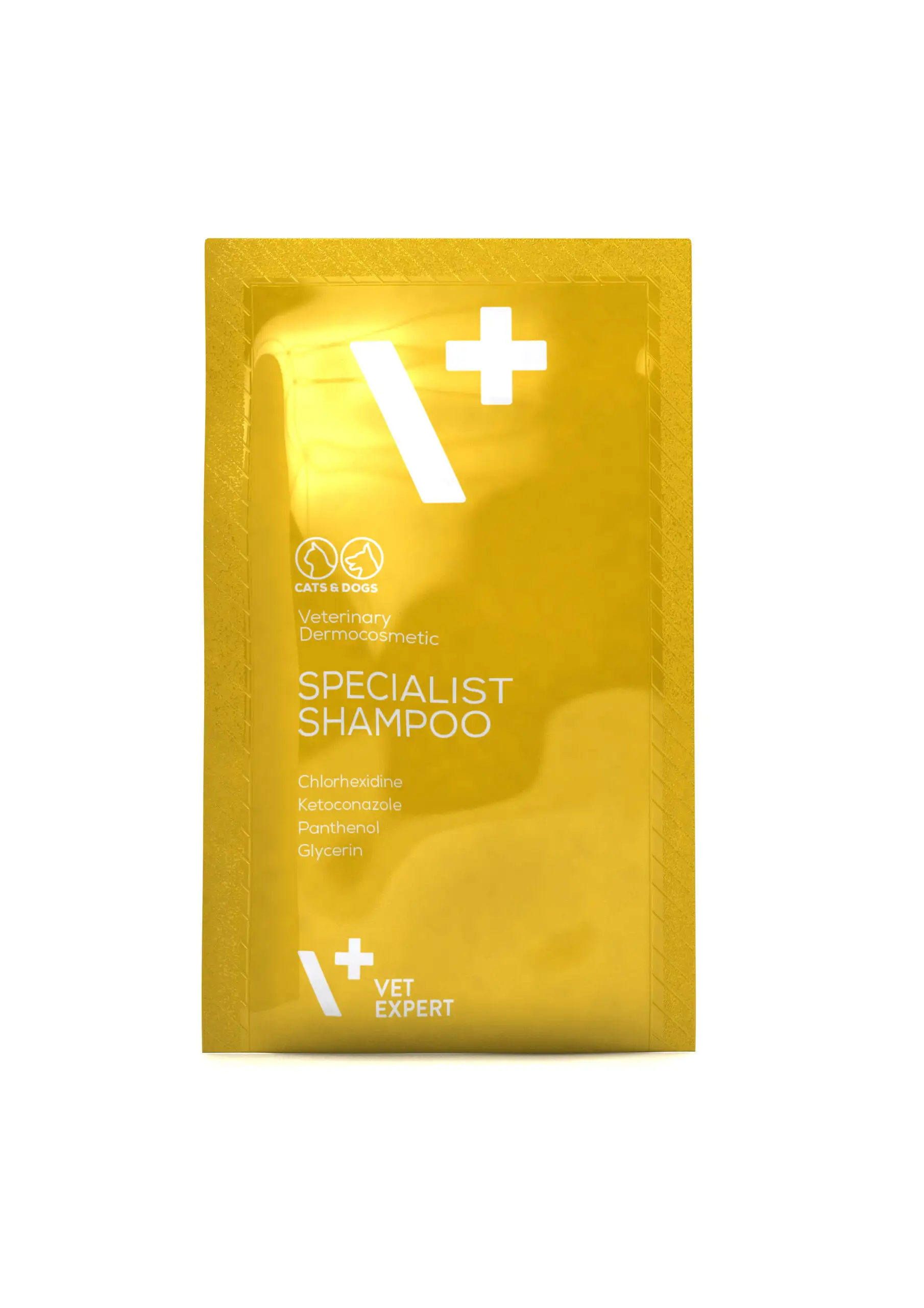 Dlako zmočite s toplo vodo, nanesite šampon in ga vmasirajte v kožo, da nastane pena. Pustite delovati 5 minut. Sperite s toplo vodo in osušite dlako. Izogibajte se predelu oči in ušes.